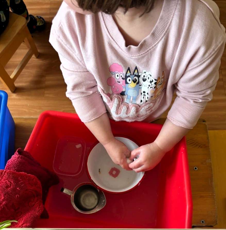 Our classroom community also came together for special shared experiences this month. On Pancake Tuesday, the students helped mix the batter before gathering to watch the pancakes being prepared on the griddle. They then enjoyed sharing a snack together, reinforcing both practical life skills and our sense of community. A few weeks ago, we were fortunate enough to have Casa South share crepes with us, offering them an exposure to a different style of cuisine and broadening their cultural awareness in a meaningful and delicious way.