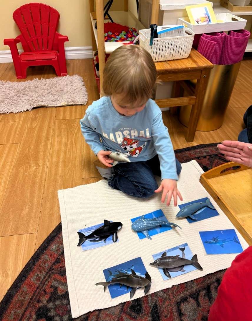 As we moved into February, the class eagerly embraced the spirit of Valentine’s Day — they have truly been enthusiastic about every seasonal celebration so far this year. We thoughtfully rotated several materials on our shelves to reflect the theme, including spooning activities with small plastic hearts and fine motor work using tweezers with felt hearts. These subtle changes have sparked fresh interest, particularly among students who had begun to master — and perhaps tire of — the traditional spooning and tweezing works. By refreshing familiar materials with a seasonal touch, we were able to re-engage their curiosity while continuing to strengthen the same foundational skills in coordination, concentration, and independence. We also introduced “heart trees,” where they practiced pasting hearts onto a bare tree outline, as well as paper heart chains that quickly became a classroom favourite. The heart chains were chosen consistently each day and provided an opportunity to practice using a stapler (with teacher guidance), further refining hand strength and control.